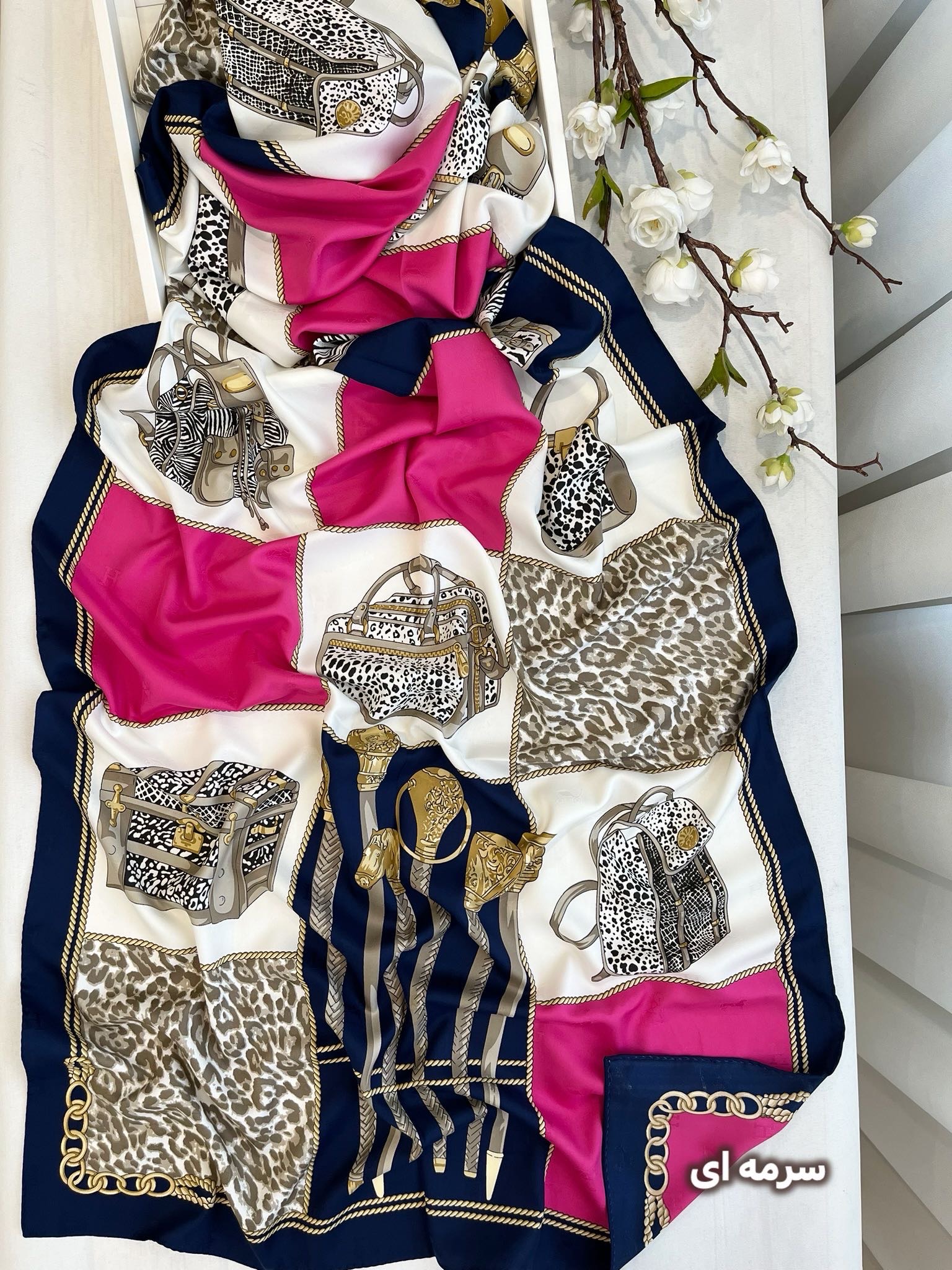 شال مجلسی ابریشم طرح برند