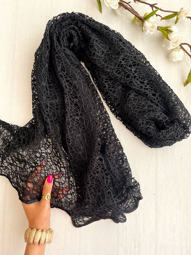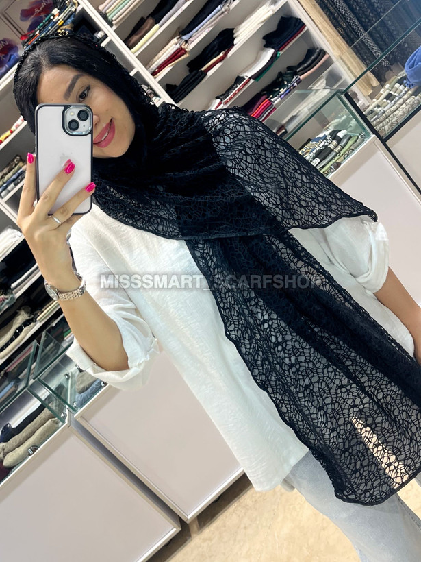 شال مشکی قلاب بافی آسترتوری