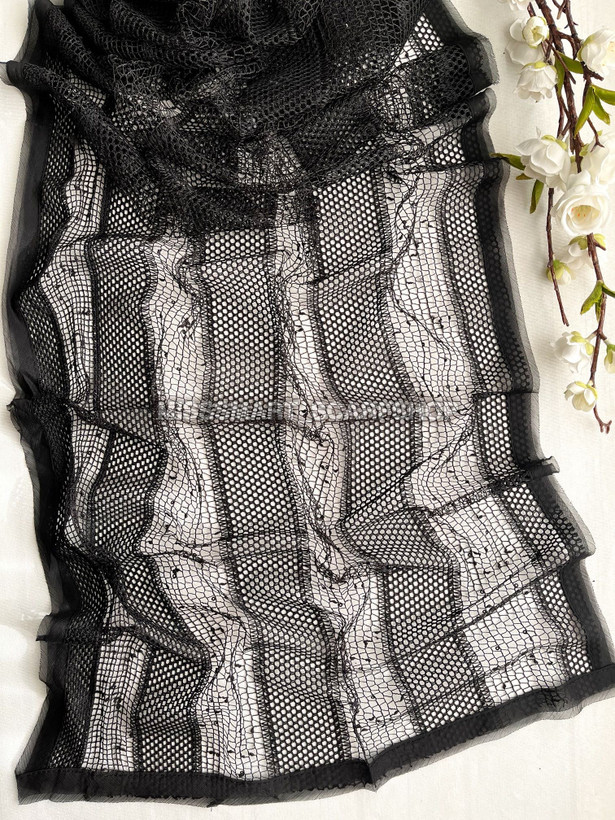 جنس این شال جذاب وارداتی قلاب بافی هست که داخلش پولک های ظریفی کار شده و حاشیه حریر دور تادور شال داره 😍