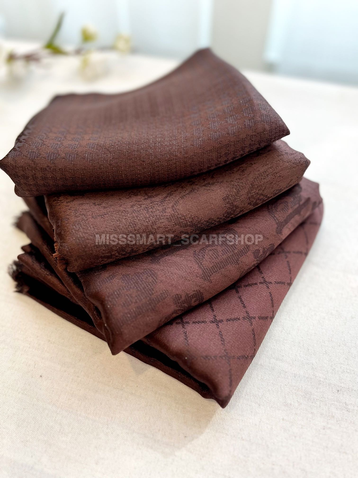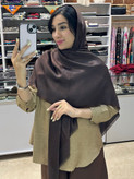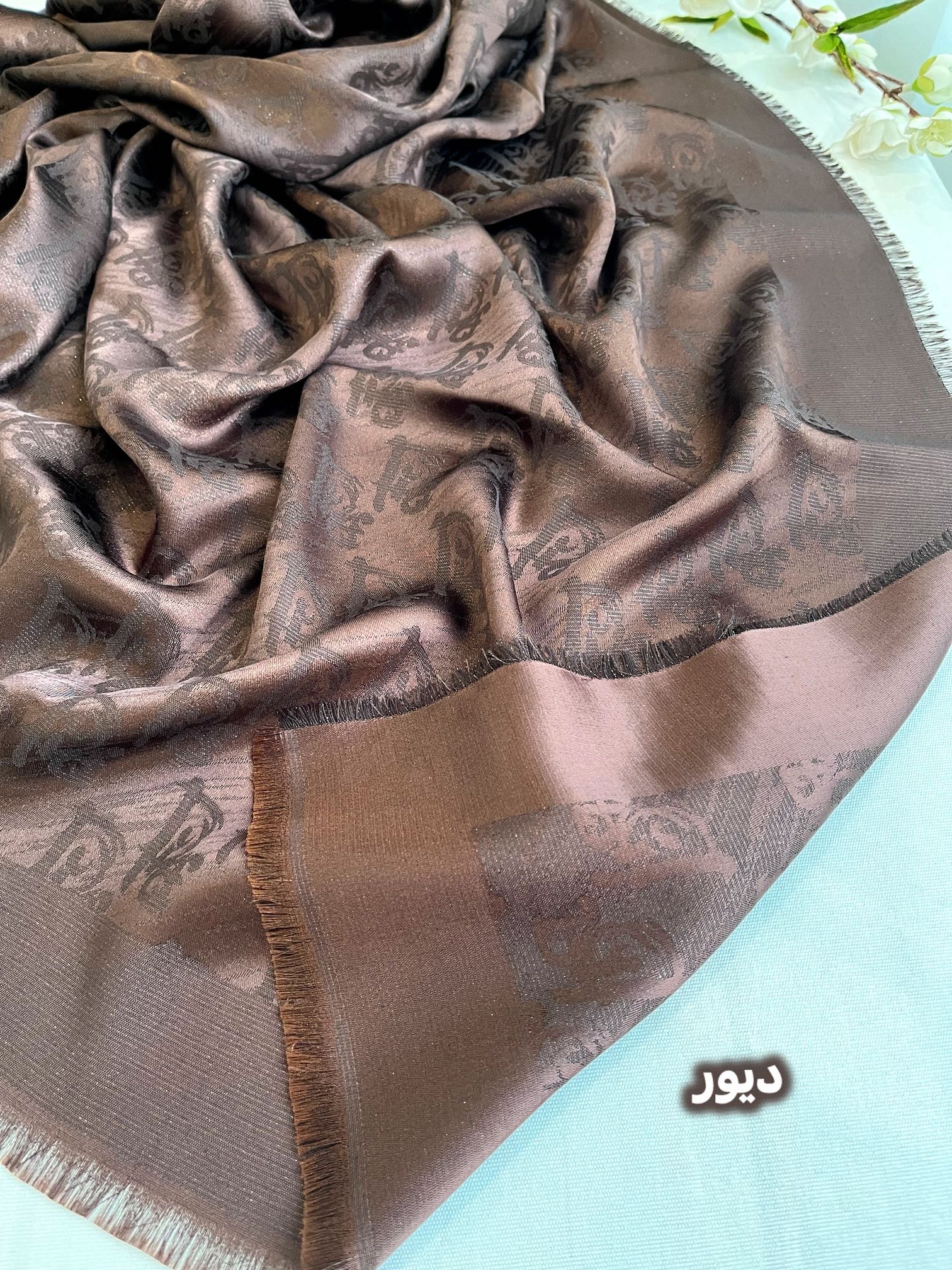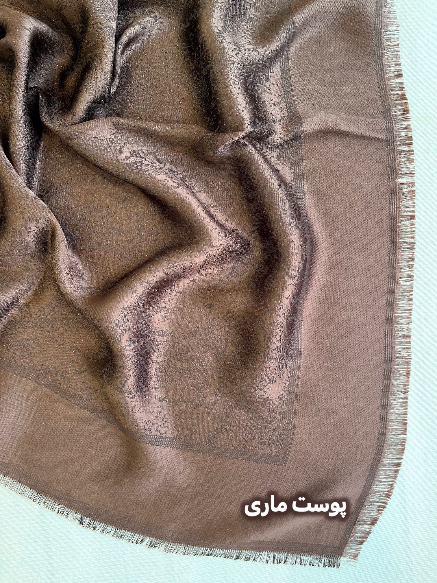 روسری قهوه ای مجلسی نخ ابریشم لمه دار قواره بزرگ