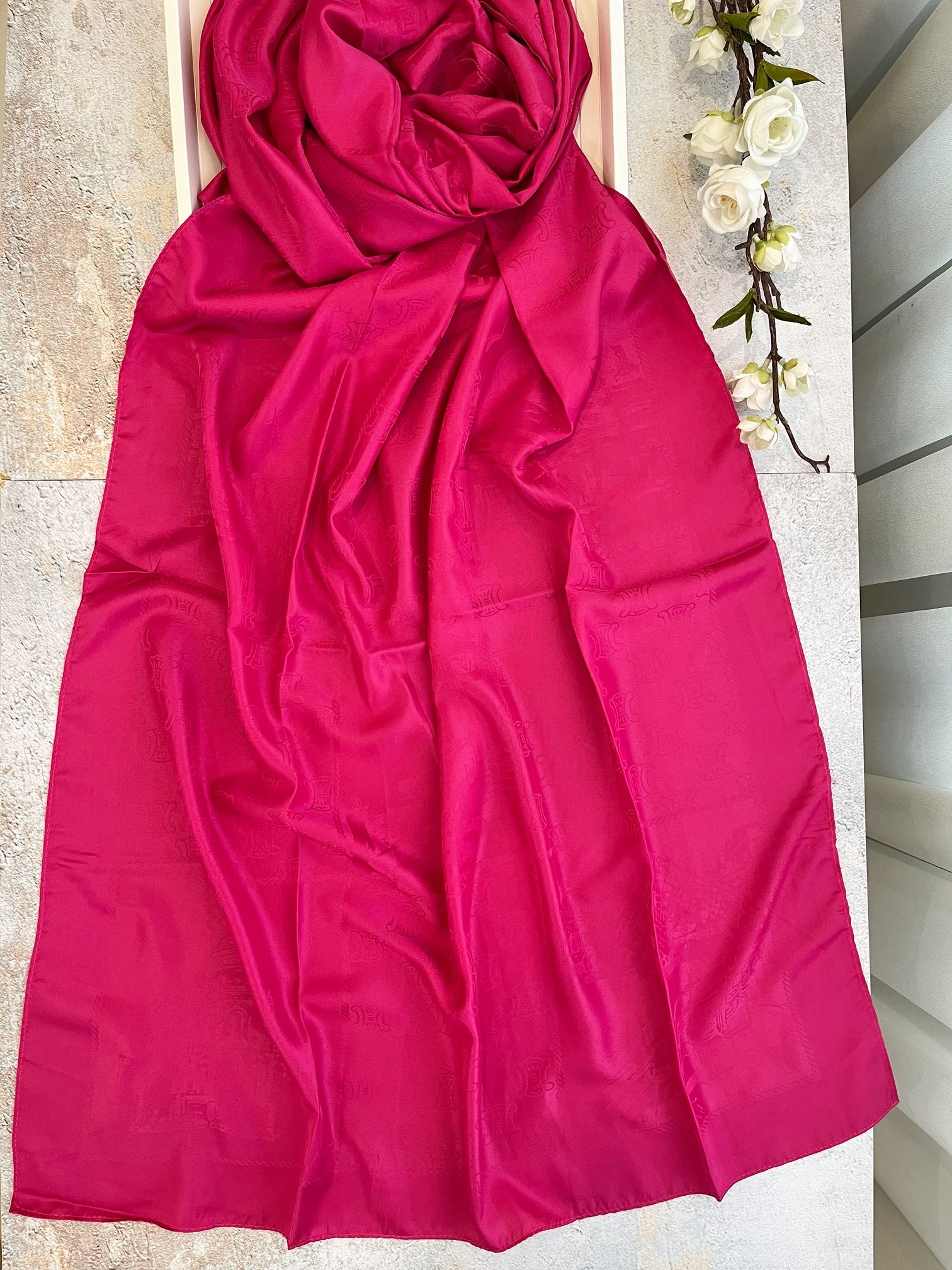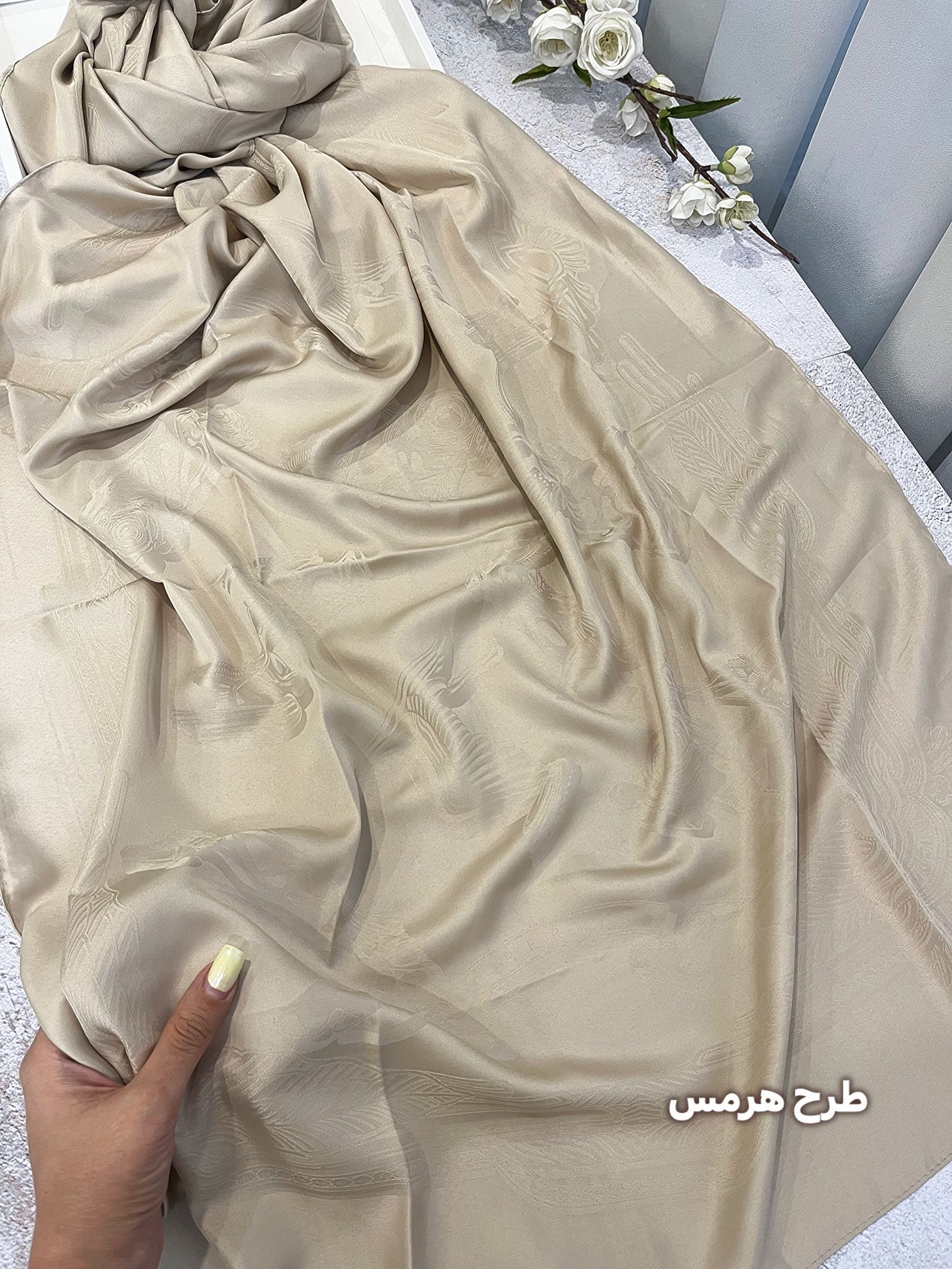یه شال رسمی و شیک که مو رو هم نشون نمیده ،جنسش ساتن ابریشمه با کیفیته / خیلی نرم و لطیفه / از خود پارچه طرح برند داره که خیلی استایل های رسمی تون رو شیک و باکلاس میکنه 😎