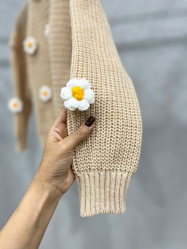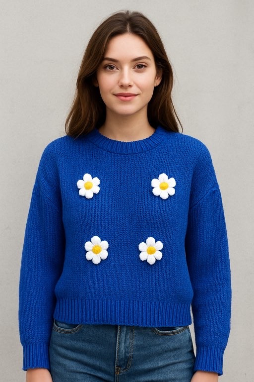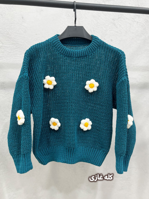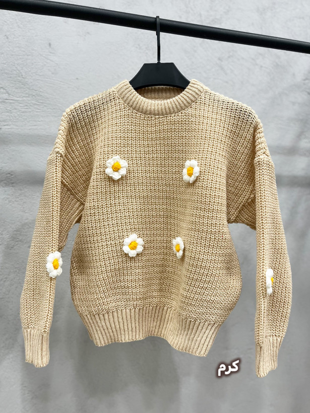 یه بلوز بافت پینترستی و دختروونه با گلهای برجسته و جذاب ،که استایل رو خیلی خاص و کیوت میکنه در رنگبندی خیلی زیبا
