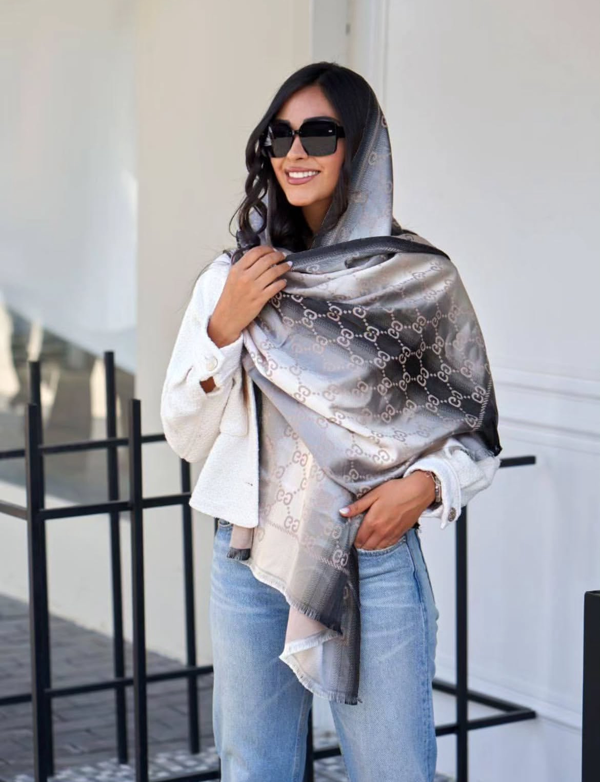 شال مجلسی کشمیر ابریشم گو.چی (دوروو)