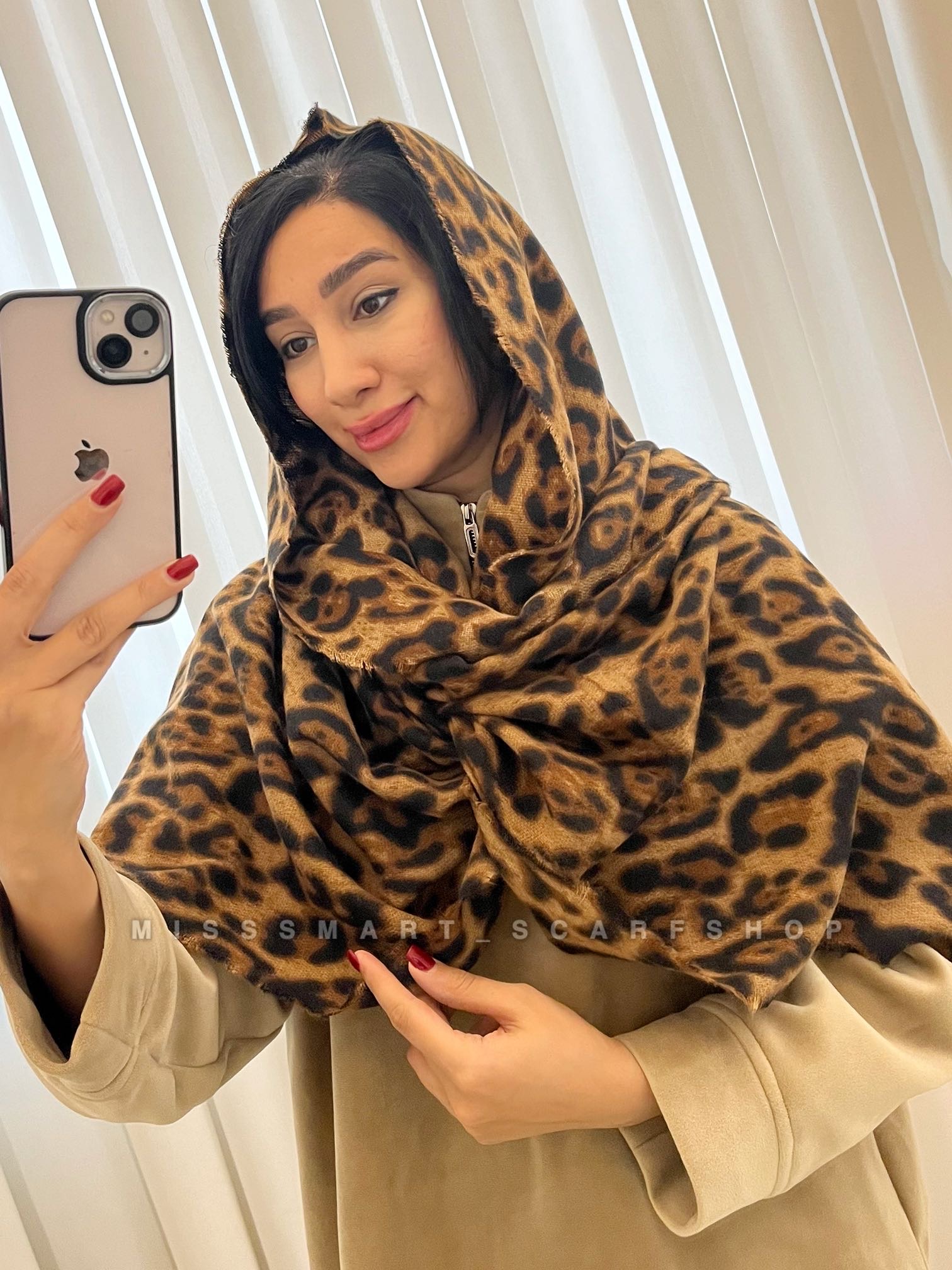 این شال پلنگی جنس بسیار لطیف و ظریفی داره ،بسیار خوش سره ،دورریشه و پشت و روش تفاوت نداره ،ینی پشتش سفید نیست،وارداتیه