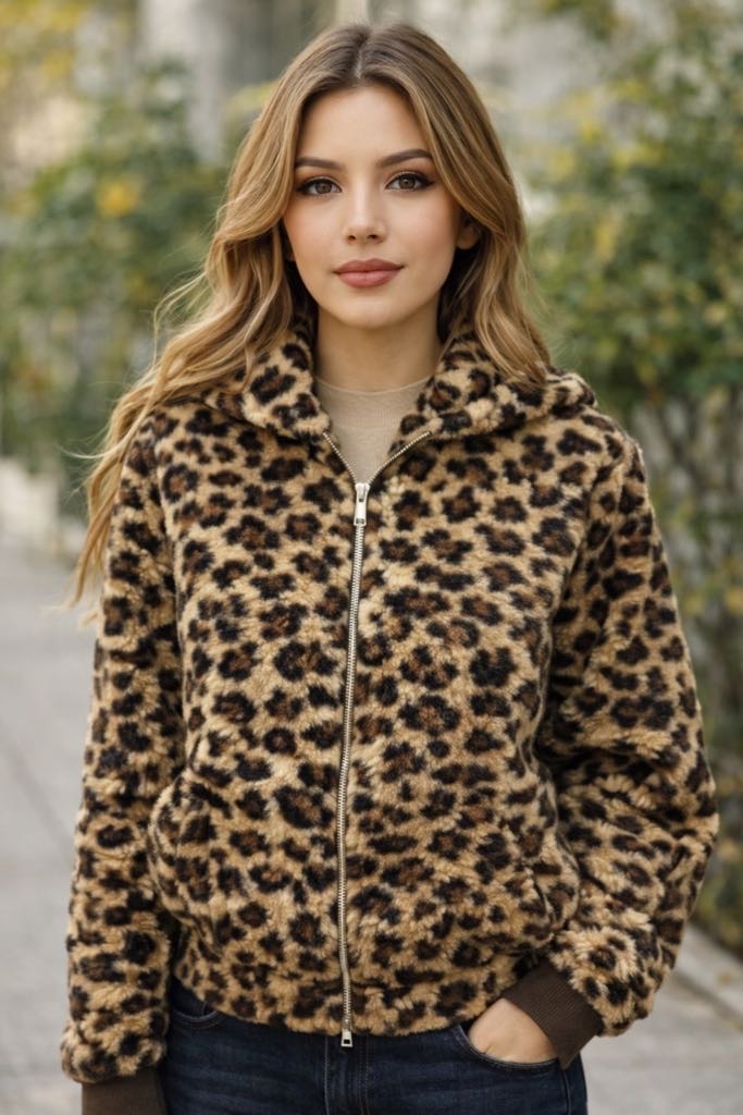 بامبر جذاب پلنگی با پارچه تدی نرم ،آستر دار،کلاه داره ،در دو رنگ کاربردی و شیک