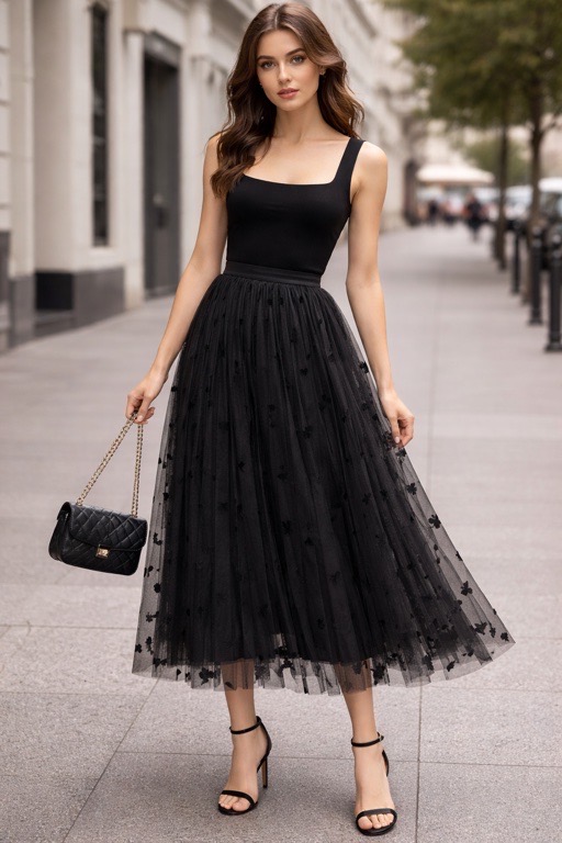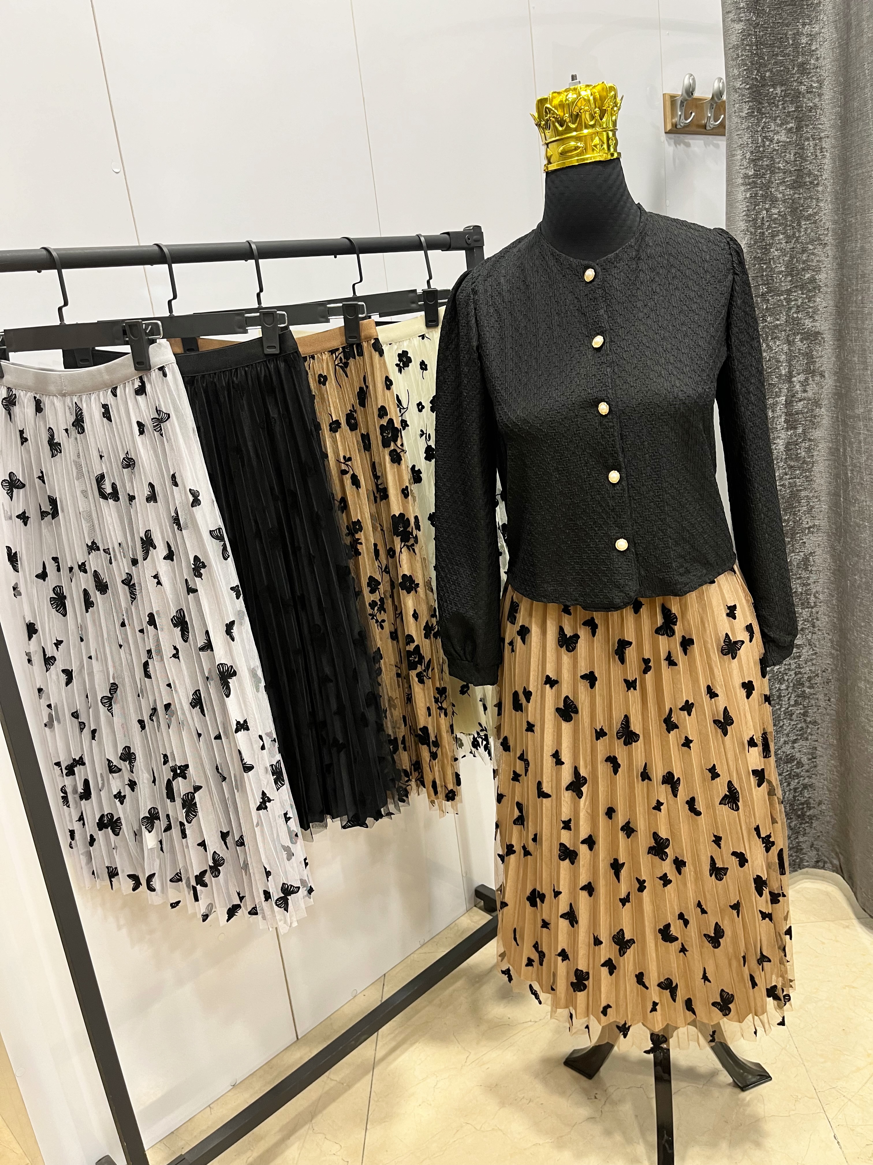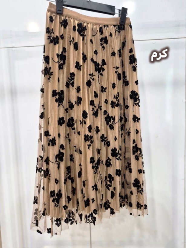 یه دامن خیلی جذاب و دخترونه ، خوبیش اینه دوروو هست یه رو توره با طرح های مخمل یه روش ساتن ،کمرش کش هست و خیلی راحت سایز میشه تا سایز ۴۶ ، خیلی استایلهای بهاریتون رو ناز میکنه 🤌😍
