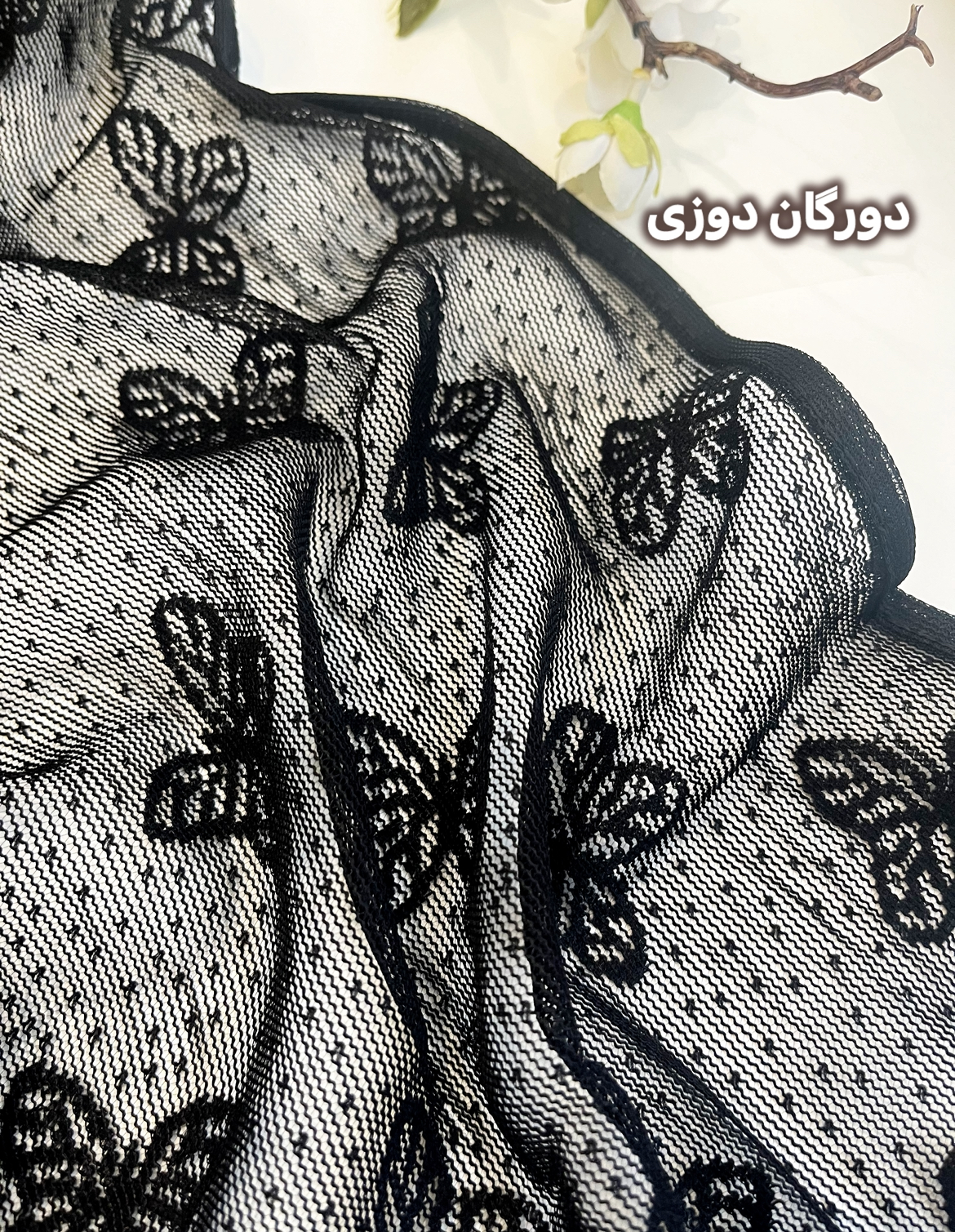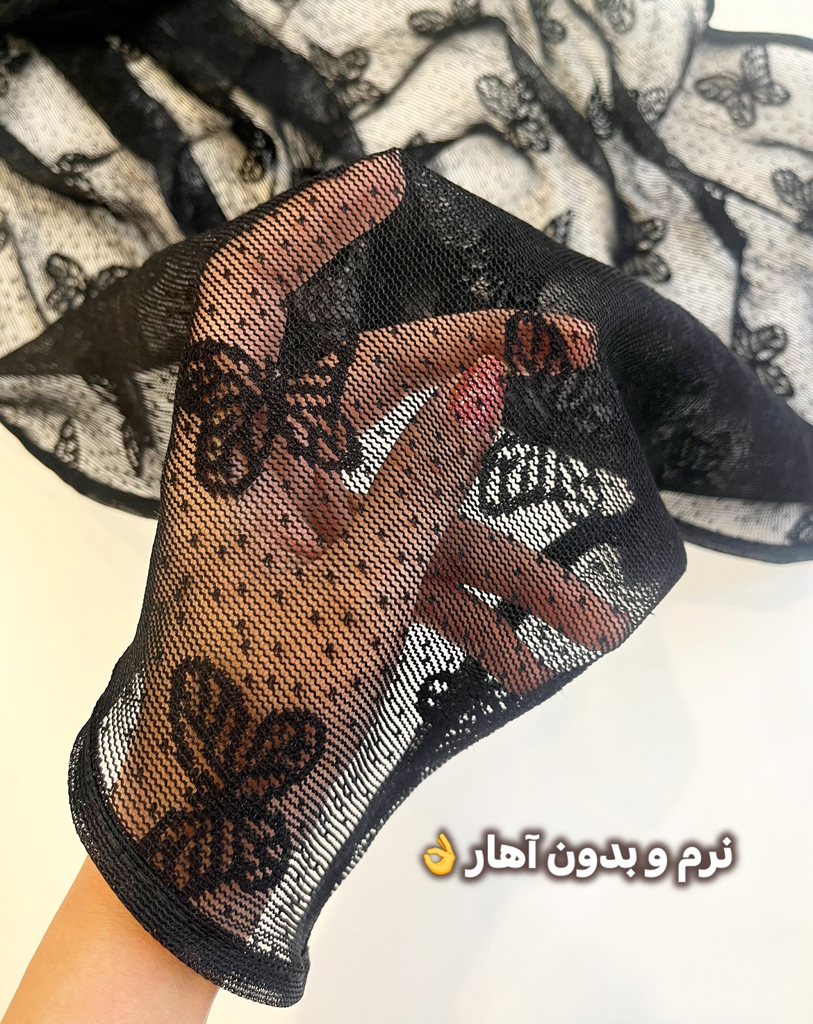 یه شال مشکی توری جذاب با طرح پروانه 😍 خیلی نرمه و بدون آهاره،کاملاً مشکیه،مناسب استفاده مجالس و روزمره،اصلاً سُر نمیخوره