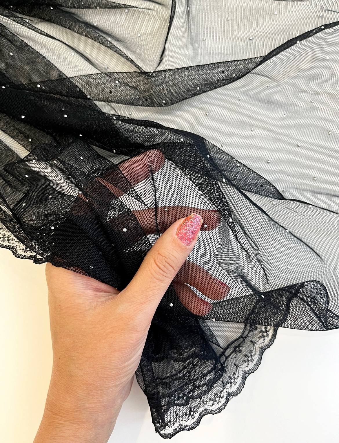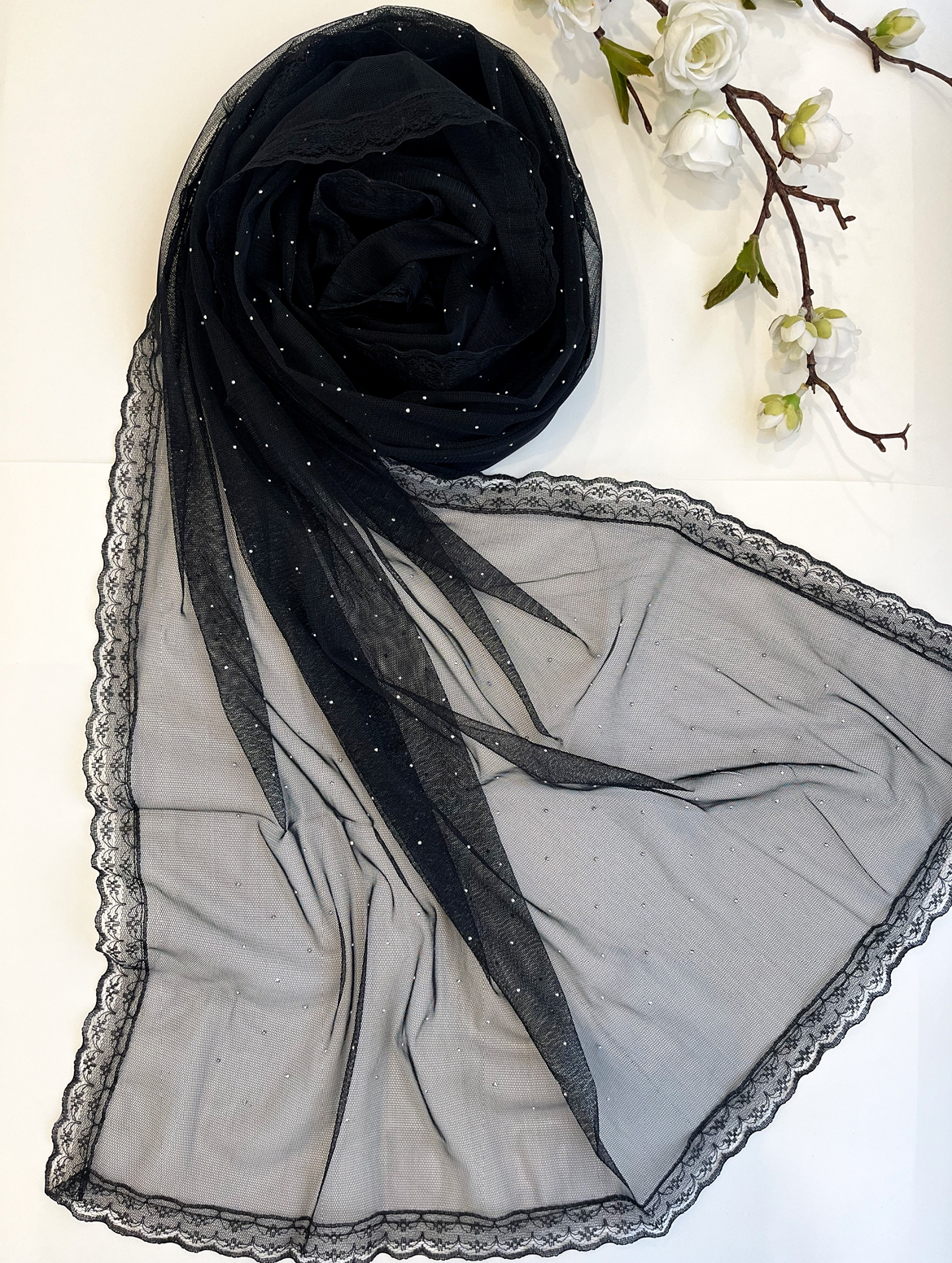 شال توری مشکی نگین دار