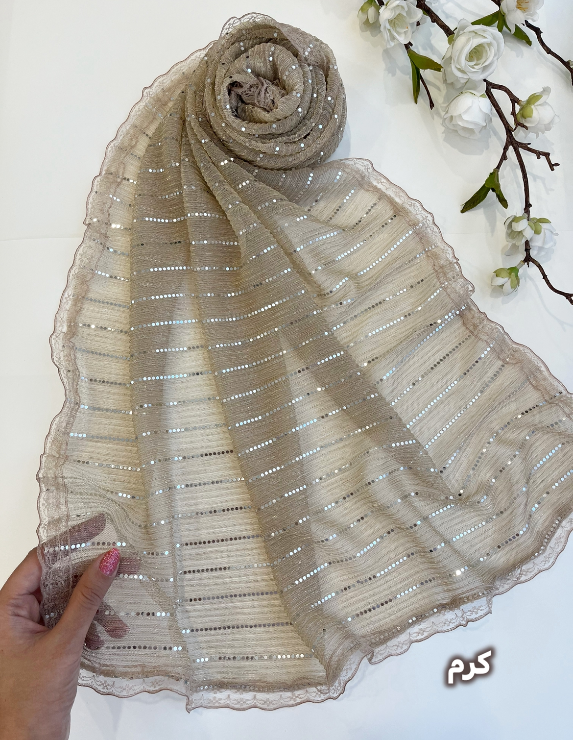 جنس شال بسیار نرم و لطیف و خوش سره 👌 ایستایی خوبی داره،مو رو خیلی نشون نمیده،حاشیه گیپور داره در دو رنگ کاربردی مشکی و کرم 😍