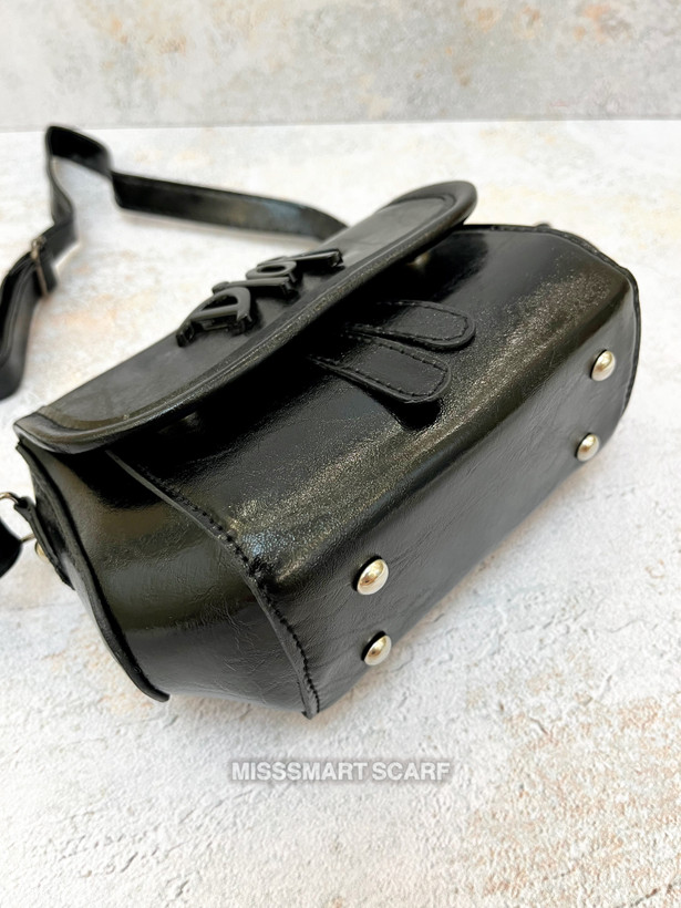 یه کیف مشکی با جنس چرم مصنوعی باکیفیت و ابعاد مناسب ،خوش دست و سبک و کاربردی🤌😍