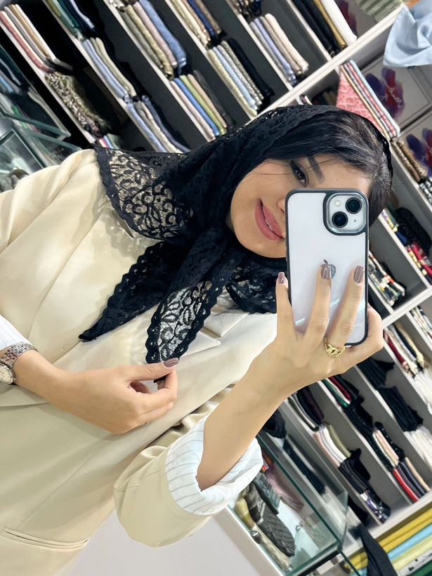 روسری گیپور خیلی طرفدار داره مخصوصا اینکار چون طرح ریز و ظریفی داره و مو رو خیلی نشون نمیده، ابن روسری سه گوش هست با حاشیه دانتل ،ابعاد مناسبی داره راحت گره میخوره،مینی نیست .