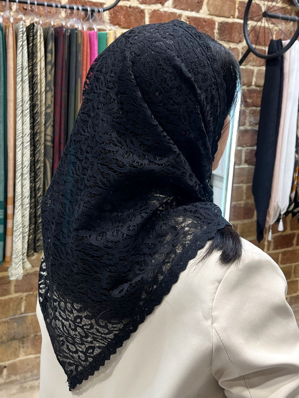 روسری گیپور مشکی حاشیه دانتل