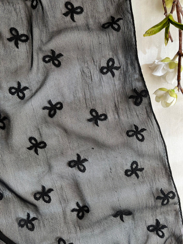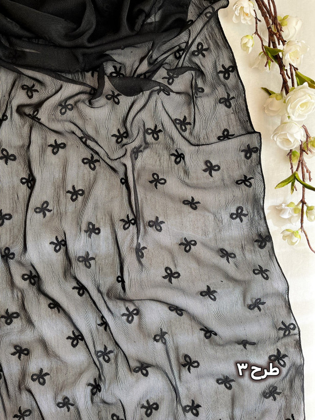 جنس این شال زیبا توری با پاپیون های جذاب هست،و کاملاً مشکی ،با قیمت استثنایی 😎