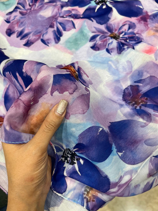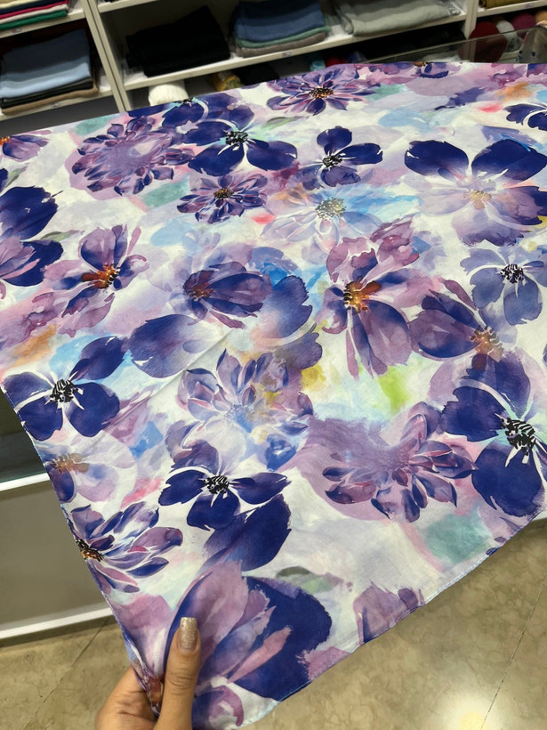 جنس این روسری بسیار سبک و خنک با گلهای آبرنگی خوش آب و رنگ و زیبا مناسب استفاده تابستان با ابعاد ۱۴۰