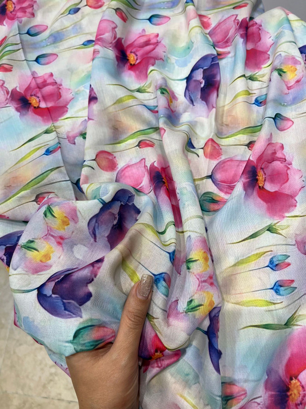 دیدن محصولات مرتبطیه روسری نخی با گلهای خیلی قشنگ و خوش رنگ و جنس سبک و خنک تابستانه که چروک هم نمیشه 🥰