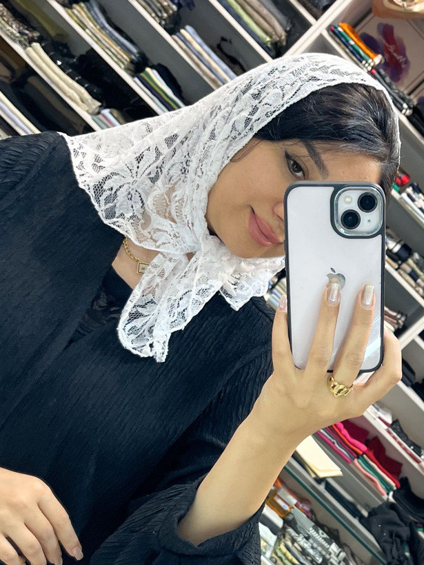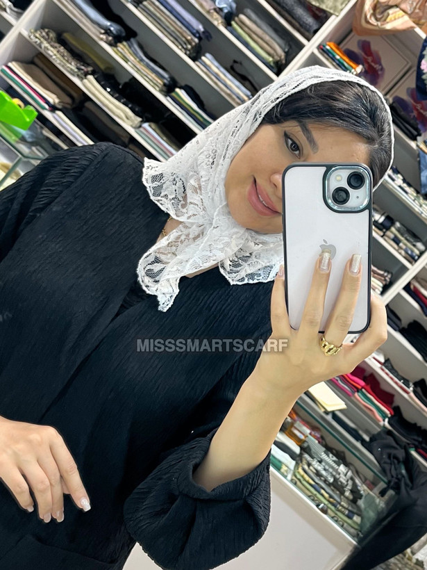 ابعادش مثل مینی اسکارف قواره ۷۰ میشه روی سر،جنس گیپورش نرمه و راحت گره میخوره ،عکس روی سر رو ببینید حتما🥰